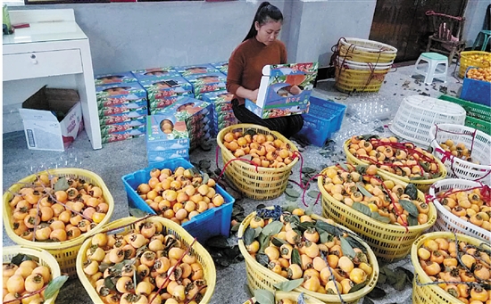 正逢柿子销售旺季,新楼村处处呈现丰收忙的景象。方山柿深受市民喜爱,当然离不开其好口感和丰富的营养。“方山柿所含维生素C是普通水果的2倍,营养价值很高。”凌羽丰说,而且方山柿与众不同,由于成流质状,可以像吃果冻一样用吸管吸着吃。