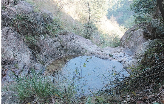“天马腾空花坪坛,神仙脚迹石水缸。”记者与村支书陈振汝、村委会主任陈伟法、老年协会会长陈绍土、村民陈有强以及陈振罗等一行人爬上大坑头山,寻找地名赋中的“神仙脚迹”。