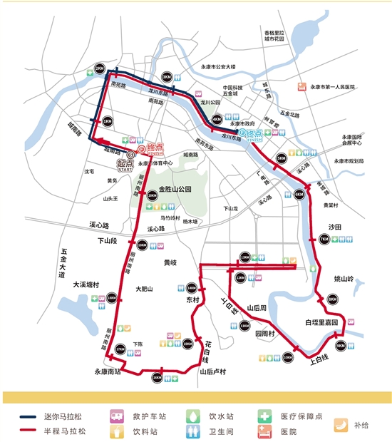 5日,记者一行带上永康马拉松赛事线路图,提前踏访线路及沿途风景,特制一份“观赛攻略”,送给市民朋友。从体育馆出发,沿着赛事路线绕行一圈,就发现了一些趣事。可以说,此次永马赛道经过了大半个城区范围,也能较为全面的展示永城风貌:既有城市发展的许多新地标,又有老城印象;既有步行街商业区的商业业态,也有江南街道园周村的美丽乡村;既有体育馆等运动场地,又有龙川公园等休闲场所。除了起点市体育馆和“迷你马”终点丽州广场之外,记者发现还有许多较为适合“观马”的场地。市民朋友不需要集中在起点、终点观看。为此,我们绘制了此份观赛指南送给各位。(见图)