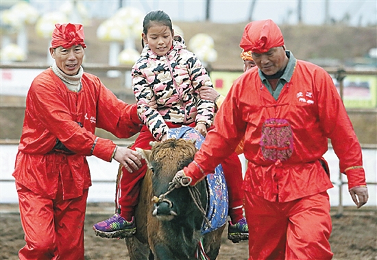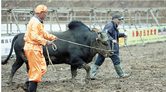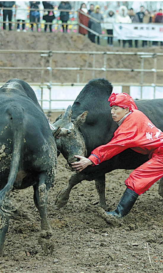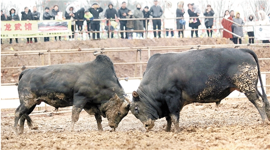 春节期间,龙山镇龙川文化园举行了第二届“壹道乐花式”斗牛文化节。斗牛文化节从年初四开始,一直持续到年初六。20日,有10多头牛参与比赛。
