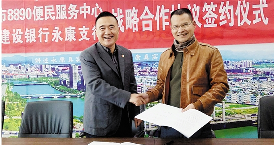记者吴航鑫报道 近日,8890便民服务平台与建设银行永康支行签署了生活服务战略合作协议,双方决定携手合作,依托8890平台资源,共同推进8890进社区服务项目,共建普惠市民平台。