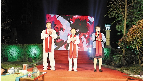 10日晚,中浙阳光小区内,烛光与莲灯交映,茶香氤氲,书声琅琅,好一幅流觞曲水的雅景。由市文广新局主办,市图书馆、梅园公益阅读协会(筹)承办的以“共享美文 品味书香 净化心灵”为主题的2018年全民阅读系列活动之一的家庭朗读会在这里拉开帷幕。15组家庭依次登上舞台,演绎朗读的魅力。