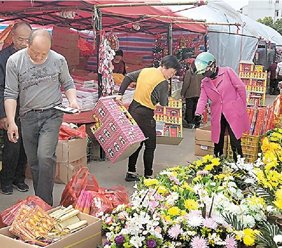 绿色祭扫日益盛行 塑料祭品仍有市场