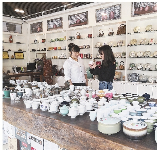 市民在挑选茶具器