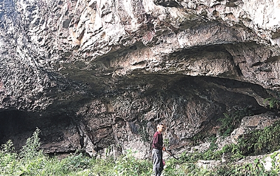 快到山顶时,出现一条岔路,往右走就是去武义方坑,往左平走200多米,便可到达白云岩洞,这个景点简直像“仙人洞”。不过这条岔路极为难走,有的地方窄的只容得下一只脚,有的地方被大石块挡着,需要手脚并用小心翼翼攀爬过去。约20分钟后记者终于到了白云岩洞前。