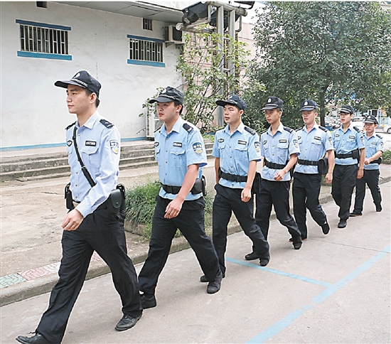 朱林杰(左一)带队在辖区巡逻