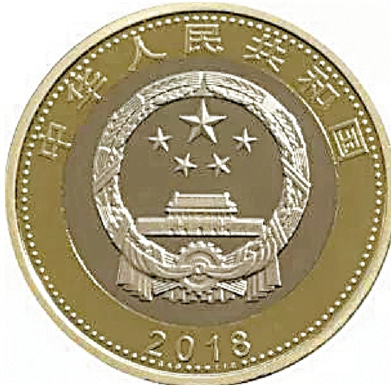 中国高铁普通纪念币正面图案为国徽,其上方印“中华人民共和国”,下方印年号“2018”字样;背面图案主景为“复兴号”动车组,背景为大胜关长江大桥、北京南站、“复兴号·中国高铁”文字及高山、梯田、沙漠等。主景上方印有面额“10元”字样。直径为27毫米,材质为双金属铜合金。