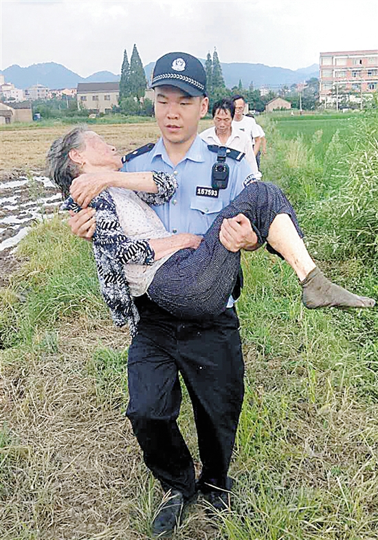 就在这时,救护车到了。因通往池塘的道路狭窄,只能停在500米外的大路边。时间就是生命,李荣超抱起老人一路狂奔,往救护车停靠的地方跑,在协警的帮助下,把老人抬上救护车,送往古山医院救治。
