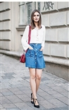 而牛仔、西装料、哑光皮质等挺括的材质普遍很能“藏肉”,显瘦裙装,它们是首选。