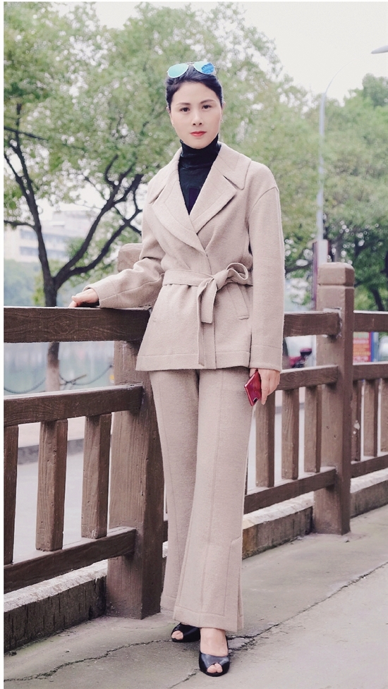 要想在茫茫人群中最显气质,首推当然是净色的西服套装。担心套装太过干练?不妨卸下框架,选择一款棉绒材质的西装。再者,建议在内搭上做文章。跳脱的墨绿色丝绒高领衫,令一整套西服鲜活了起来。纵观全身,干净利落的剪裁,和谐的色调,以及发间那枚墨镜的点缀,大气风范不由得呼啸而出。