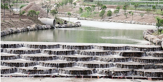 12日,记者在西城街道小北溪(童宅至飞龙山段)河道看到,这里水清岸美,一座瀑布式的堰坝格外漂亮。据悉,西城街道小北溪(童宅至飞龙山段)河道整治工程去年初开工,实施河道清淤770米,新建河道护岸1000米,新建堰坝2座、河埠头1座、亲水平台7处。 记者 林群心 摄