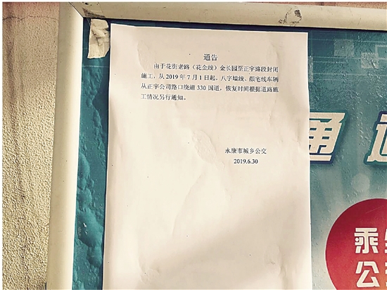 “道路封闭是从7月1日开始的,为此我们提前在紫微车站内张贴了绕行提醒行告示,施工方也在7月3日的《永康日报》第10版刊登了封闭施工公告。”该工作人员告诉记者。