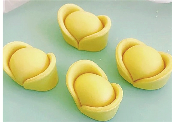 6.将元宝放入蒸箱,一个个生动的元宝就好了。(如右上图)