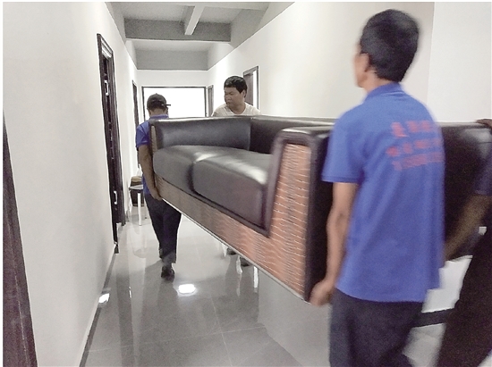 “当初我们搬这张桌子的时候,十几个同事花了大半天的时间才搬好,中间还磕碰了好几次。”售楼中心一位工作人员说,“专业师傅就是不一样,搬起来又快又稳。”