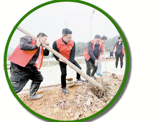搬运树苗,挥锹铲土,植入树苗,培实新土……一到现场,大家就相互合作,有序开展植树活动。短短两小时,数百株浙江楠、桢楠、红豆杉等树苗在这里“安家落户”,在明媚的春日里随风摇曳,焕发出勃勃生机。