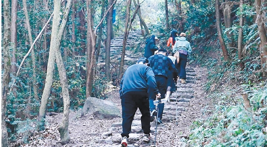 本报讯(融媒记者 施俊涛) 石城山黄帝古道起点位于江南街道,是人文型浙江省一级古道,全长10公里,有园周村西南角、南都禅寺后面等多个入口,目前以走南都禅寺后面的入口居多。