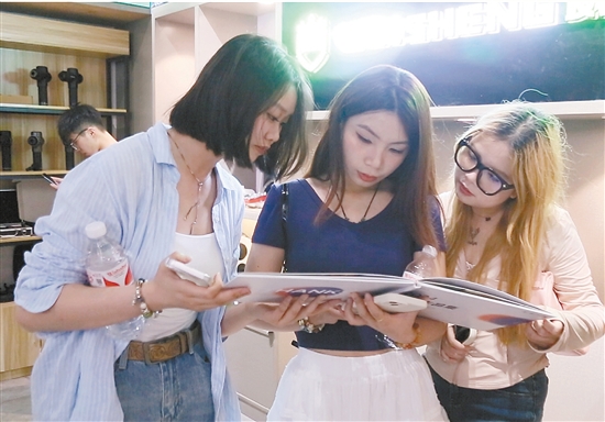 大学生翻看企业特色产品资料