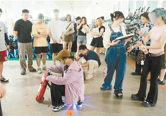 现场参观浙江飞剑科技有限公司的钛杯、永康市威盛工贸有限公司的筋膜枪、牧星永康医疗科技有限公司的电动轮椅,到永康市锦霖工贸有限公司(以下简称“锦霖公司”)的电动漂移车、浙江荣亚工贸有限公司的多功能快装房/棚,胡昕向记者笑道:“这两天,学生没少向我分享感悟,他们说这趟10多个小时的大巴没白坐。”