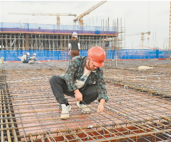 “现在项目处在赶工期的阶段,大家都在加班加点作业。虽然只是做钢筋捆扎这块工作,但事关工程安全和品质,作业过程容不得半点马虎。”作为一名从事建筑行业20余年的老建筑人,杜凤友对忙碌的工作早已习以为常。“现在我和老婆在永康上班,孩子在老家上学。我们每天都会和他通电话,国庆节当天还和他一起在网络上观看了升旗仪式。”杜凤友说。