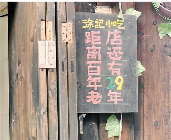 前几年,象珠老街曾进行提质改造,对街巷的基础设施进行保护性修缮、对历史建筑进行活化利用,在留住街巷肌理的同时,又让老街在时光流淌中芳华依旧。一些新换上的招牌里也透露出人们对老街的期待。比如,一块写着“离百年老店还差29年”的黑板,挂在“徐记小吃”店铺门边。