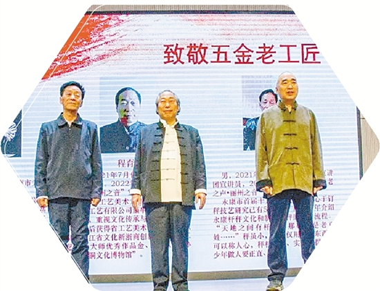 永康作为五金之都,孕育的四千精神、五金精神、工匠精神内涵丰富,是源自本地、纯粹质朴的正能量源泉。近年来,市关工委邀请国家级工匠大师、优秀老企业家、劳模代表、非遗传承人加入“丽州之音”宣讲团。他们通过亲身讲述改革开放中的创业故事、探路历程,不断将创业创新、爱国爱乡的文化基因转化为永康青少年成长道路上最为生动且富有教育意义的教学素材。浙江省工艺美术大师、大国非遗工匠、中国传统工艺大师、浙江省非遗代表性传承人程育全就是其中一员。