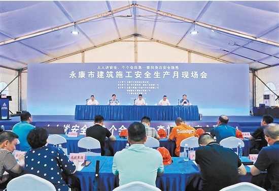 6月13日,由市住房和城乡建设局(以下简称“市建设局”)主办的永康市建筑施工安全生产月现场会在西城街道周塘分社区块城中村改造建设项目现场召开。我市各镇(街道、区)村镇建设分管领导及村镇建设办负责人,建设工程相关国有企业分管建设领导及项目管理中层干部、各建筑工程企业相关负责人等500余人到现场观摩学习,共同筑牢建筑领域安全防线。