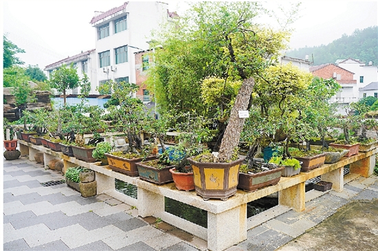 6月16日,记者走进天表自然村,从沿村公路拐进一条小巷,潺潺水声便率先在耳中响起。抬眼看去,一处绿意葱茏的小院映入眼帘,小院主人俞同恩和他的妻子陈国静正忙着打理小院。