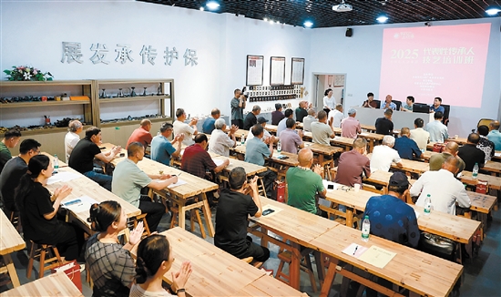6月19日上午,永康市五金非遗代表性传承人技艺培训班开班仪式举行。本次培训由市文广旅体局主办,市文化遗产保护中心承办,通过专题讲座、实操训练和互动研讨,培养兼具创新意识和实操能力的非遗传承人才。 融媒记者 卢斌 摄