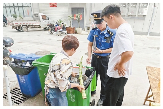 此外,执法中队还建立了动态巡查机制,紧盯桶身洁净度与摆放合规性。对于未按规定操作、长期占道的商户,先进行教育引导,拒不整改的则依法亮出《城市市容和环境卫生管理条例》的“警示牌”。刚更新了餐厨桶的商户施先生坦言:“起初嫌麻烦,现在看到门前清爽了,顾客都夸环境好,值!”