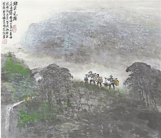 该画名为《铁匠之路》。1954年因养母去世,无人资助读书,我无奈走上当流动铁匠学徒之路,其苦一言难尽。