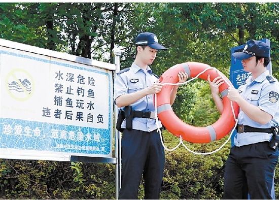 东城派出所以河道巡逻为核心抓手,每天沿辖区河道开展车巡、步巡和无人机巡,重点排查非法捕捞等行为,同时重点检查警示标语、沿岸救生圈等防溺水装备,确保在紧急时刻能够发挥作用。