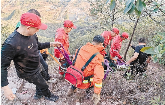 “石城山路面多为石块、台阶,扭伤情况多发。有些年轻人为了刺激,会走到悬崖上,结果下不来需要救援,或者在‘老鼠跳’等险段发生摔落。另外,石城山分叉路多,容易迷路,往园周村方向有悬崖,也有人被困在山上下不来。”梅玉龙介绍,飞龙山的危险点主要集中在迷路,尤其是在一些路况不熟的区域;公婆岩也发生过人员被困事件;华釜山相对安全,但夜间登山同样存在潜在风险。