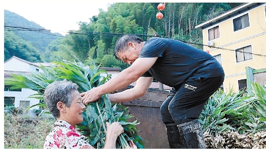 刚采收的生姜带着湿润的泥土,独特的香气瞬间在田间弥漫开来。村民成元兴今年种了250公斤姜种。看着地里丰收的生姜,他高兴地说:“今年天气好,生姜长势不错,产量也高,价格与往年持平。”