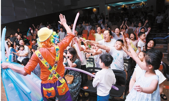 在演播厅里,魔术师玩转古今中外种种魔术,巧变飞鸽、空中钓鱼引得前排观众屏气凝神;吞针引线收获了观众连绵不绝的欢呼;滑稽小丑为小朋友们送上喜剧大礼……现场气氛热烈,惊呼声、笑声不断。
