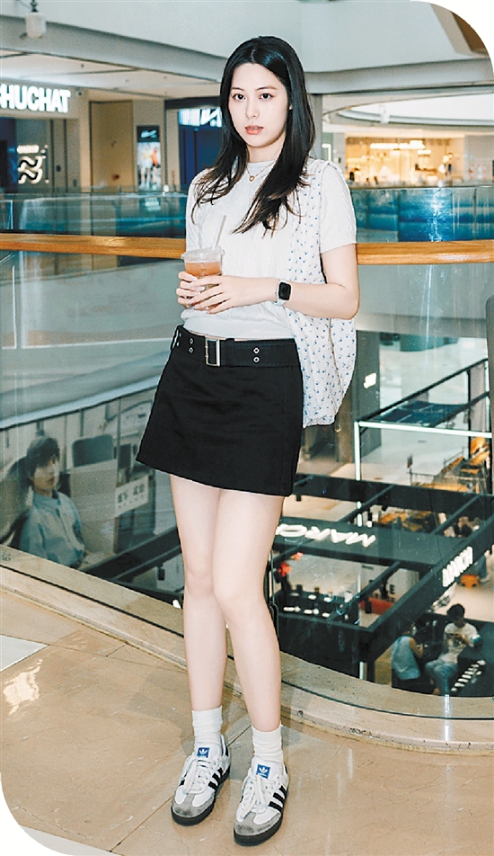 脚上蹬一双今年大热的黑白色系德训鞋,再搭配上白色堆堆袜。袜口自然堆叠,不仅能增加穿搭的层次感,还能中和裙装的精致感,让整体造型更加休闲日常,轻松驾驭各种场合,即便是逛街暴走也不累脚。