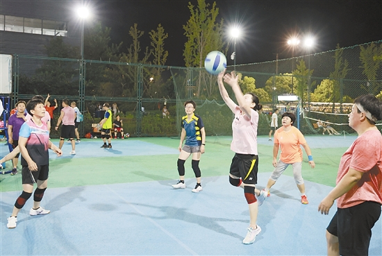 夜幕降临,暑热渐消,不少市民走出家门,享受运动带来的乐趣。跑道上,夜跑者的脚步轻快而坚定;球场上,气排球在空中划出优美的弧线;广场上,健身操队伍随着音乐整齐律动……从社区广场到专业场馆,跃动的身影与欢声笑语共同奏响夏夜活力交响曲。 融媒记者 卢斌 摄