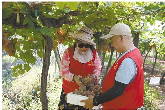 志愿者在采摘葡萄