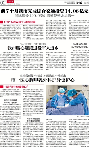 永康日报 时政·要闻 00002 市一医心胸甲乳外科护身也护心 2025-09-02 永康日报2025-09-0200012;永康日报2025-09-0200014;永康日报2025-09-0200015;永康日报2025-09-0200013;永康日报2025-09-0200016 2 2025年09月02日 星期二
