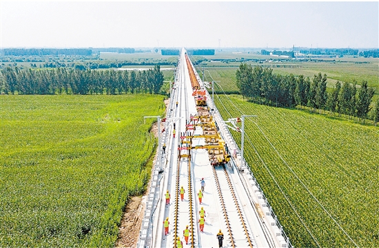 9月1日,雄安新区至商丘高速铁路(雄商高铁)全线正式进入铺轨阶段,标志着项目建设取得重大阶段性进展,为后续联调联试及开通运营奠定坚实基础。雄商高铁由雄安高速铁路有限公司负责建设,正线全长552公里,是我国“八纵八横”高速铁路网的重要组成部分。 新华社发(袁瑞宇 摄)