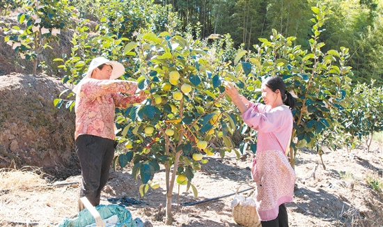 9月16日,在前仓镇荆州村森绿家庭农场内,果农们正忙碌地采摘太秋甜柿。据介绍,该农场种植太秋甜柿1.4万余株,采摘期自9月中旬起持续至10月底。 融媒记者 卢斌 摄