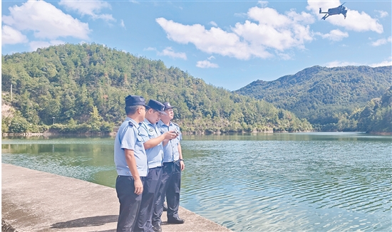“我们所管辖的三个镇里,大大小小的山塘水库就有200余个,过去靠人力巡查,费时费力还可能存在盲区,现在以‘人巡+无人机巡+监控巡’的形式,基本实现全覆盖。”石柱派出所生态警长程朝晖介绍。
