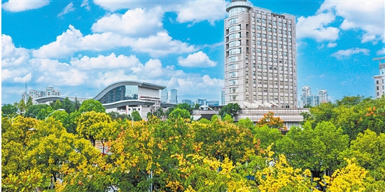 广电路的黄山栾树褪去翠绿,渐染金黄。 杨成栋 摄