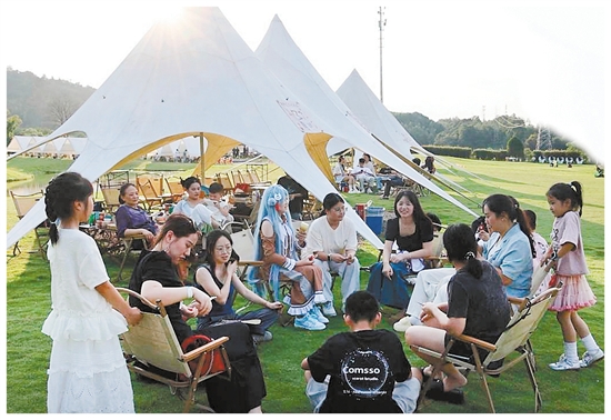 10月2日下午,江南街道一处露营地内,蓝天映着绿草,一顶顶天幕下,不少人围坐一起,烧烤、聊天、玩游戏。“趁着假期,和朋友一起来吃烧烤、聊聊天,非常舒服。”市民颜凯明笑着说。