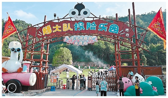 往园区深处走去,卡丁车项目和探险乐园备受游客青睐。来自金华的游客朱女士说:“假期不想去人多的地方挤,就带孩子来周边轻松游。秀岩村的旅游做得很有特色,民宿、餐饮、游乐设施一应俱全。”