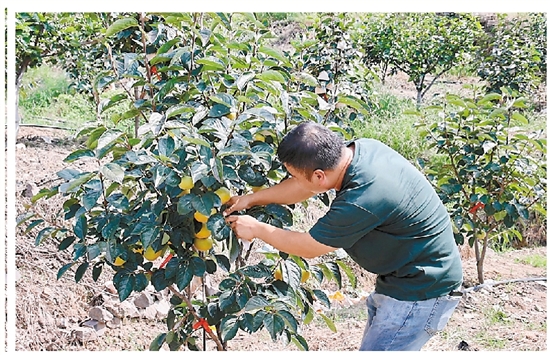 农场负责人李忠穿梭在柿林中,仔细查看果实的成熟度:“预计今年产量有五六万斤,果皮表面光滑漂亮,品质也很好。”走进果园,依山分布的柿树蔚为壮观,每棵树都经过科学修剪,确保通风透光。这里的柿子全部采用套袋种植,减少虫害等外部影响,让果皮更加细腻光滑,果型更加匀称饱满。