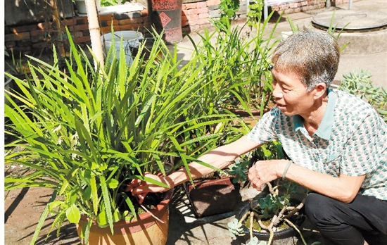 吕银所指着一盆长得最茂盛的兰花介绍:“这盆兰花是女儿拿回来让我们种的,可以说是这儿的‘长老’了。”