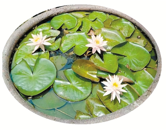 迈进大门,吕银所正俯身给她的花清理杂草。记者观察了一下她的小院,两处小花园清晰可见。一处在大门后侧,架了一个南瓜棚,棚下是正在“乘凉”的各式盆栽:芦荟、兰花、玫瑰、牡丹、菊花……另一处在窗户下方,睡莲、茶花、多肉与蓝莓相伴生长,还有一只大乌龟当“邻居”。