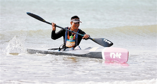 日前,在山东省青岛市石老人海水浴场举行的2025年第五届亚洲皮划艇联合会海洋皮划艇锦标赛上,一位51岁的中国选手以1:49:24.65的成绩获得男子皮划艇海洋竞速公开组冠军。这名代表中国队出战的运动员,名叫吕炜悟,是我市皮划艇运动员。在紧张的训练之余,吕炜悟抽空接受了记者的采访,与大家分享他的皮划艇人生。