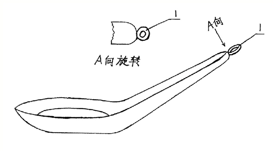 常见的方法是把传统吊烧工艺的孔洞移到勺柄末端。做一个烧制时有用,烧好了就废弃的圆环,见右图。
