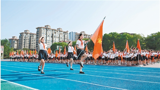 少先队改革稳步推进。截至目前,全市中小学校已100%建立少工委,由党组织负责人担任少工委主任,构建“党团队一体化”育人新格局;全域推进“特色大队”“红领巾中队”建设,确保每周1课时少先队活动课扎实落地,全面落实“分批入队”,严格“推优入团”程序,持续激发少先队组织活力与吸引力。